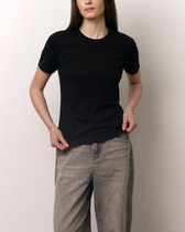 Boyfriend крой, укрепление по горловине спинки, круглый вырез. Горловина рибана. Отстрочка по горловине переда