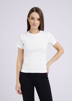 Женская футболка полуприлегающего силуэта. Горловина окантована.
