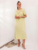 Платье с воротником-стойкой и короткими рукавами из плотного трикотажа интерлок.