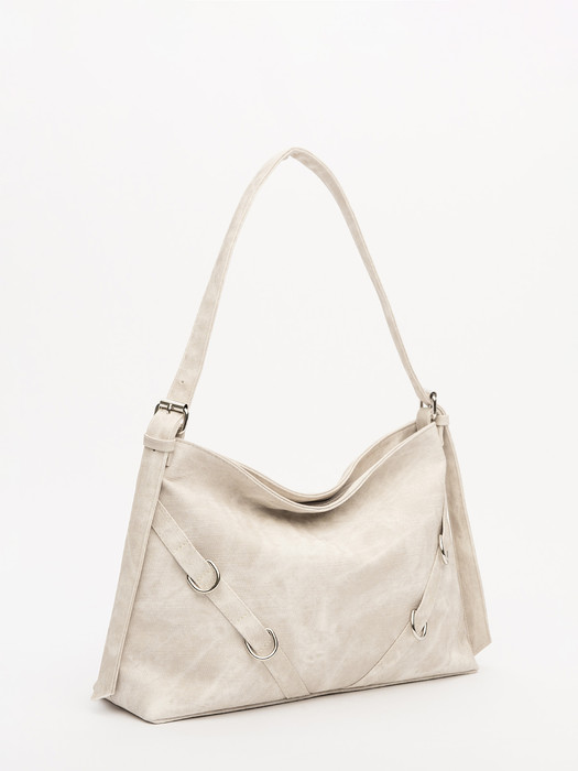 Элегантная форма хобо с декоративными ремнями и металлической фурнитурой представлена в нежном молочном оттенке. Сочетание винилискожи с отделкой под деним и эффектом тай-дай делает модель стильным акцентом в любом образе.
