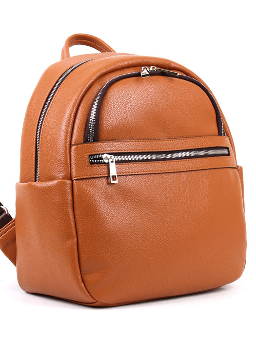 Рюкзак женский с одним отделением на молнии. На передней стенке два кармана на молнии. На задней стенке карман на молнии. Внутри рюкзака два кармана для мелких принадлежностей. На боковых стенках два открытых кармана. Рюкзак имеет ручку 7см, Плечевые ремни регулируются по длине.