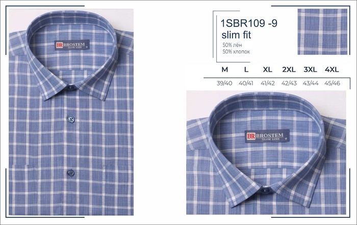 Совместные покупки Нижний Тагил Мужская одежда Рубашки — 1SBR109-9s* Сорочка мужск.полу.притал. кор. рукав, BROSTEM