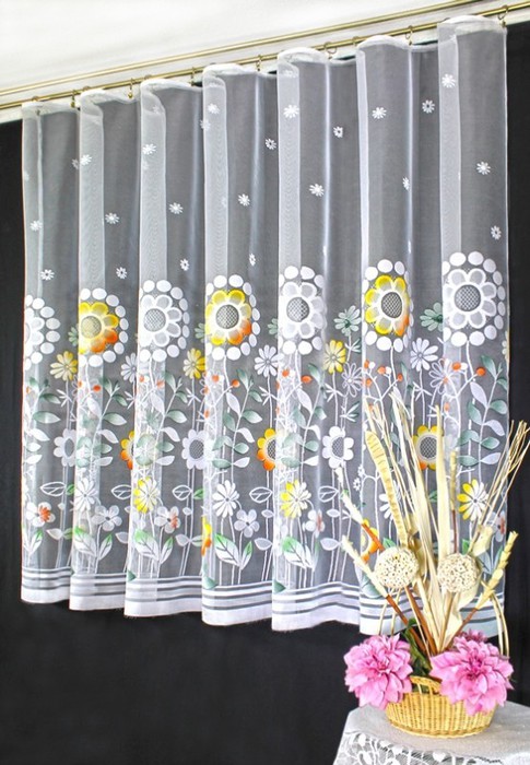 Яркая и позитивная занавеска для кухни из жакарда (жаккард - мелкая сетка). Размеры: 300 см ширина, 160 см высота. Пошита на универсальной шторной ленте. Состав 100% полиэстер. Вес 0,500 кг. Размер в упаковке (25*35*4) см. Светонепроницаемость - 12 %. Производитель - фабрика HAFT- известнейшая и старейшая в Польше