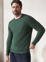 Мужской вязаный джемпер с круглым вырезом горловиины и длинным рукавом-незаменимая вещь в гардеробе модника. Модель уникальна провязанными цветными контрастными полосами в области груди. Сочетание с джинсами и кедами сделает образ более повседеневным.