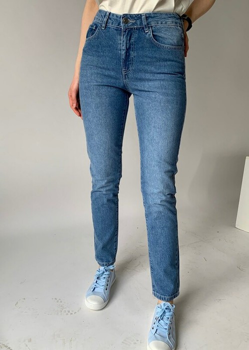 Прямые классического кроя джинсы выполнены из синего денима. Джинсы прекрасно подойдут для стиля casual и ""пятничного офисного"" дресс-кода. Благодаря универсальной длины они подойдут на любой рост, их можно носить даже с подвёрнутыми брючинами.
