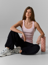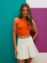 Майка из трикотажного полотна - рибана. Умеренный объем. Широкая бретель,округлая горловина. По пройме и горловине окантовка.