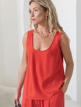 Майка из однотонного трикотажного полотна модал, с круглым вырезом горловины. Широкая бретель. Изделие очень легкое и комфортное в повседневной носке.