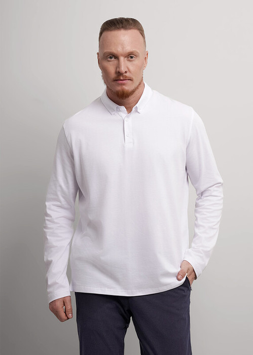 Рубашка-поло с длинным рукавом. Изделие выполнено из трикотажного полотна с кроеным отложным воротником. Модель дополнена фурнитурой. Такая рубашка-поло отлично сочетается с брюками или джинсами и подходит для учебы.