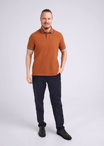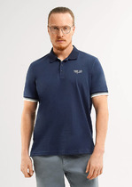Футболка поло из фактурного полотна с содержанием хлопка, с манжетами. Функциональная планка на молнии. Модель дополнена нашивкой на спинке. Отличное решение для похода на работу и создания образа в стиле casual.