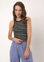 Майка-топ укороченная из трикотажного полотна рибана, полиэстер с эластаном. Бретели из шляпного шнура. Деталь переда двойная.
