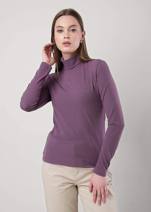 Водолазка из трикотажного полотна рибана с вискозой. Длинный втачной рукав. По горловине стойка.