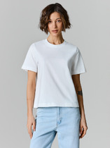 Футболка прямого силуэта из трикотажного полотна кулирка. Горловина круглой формы, широкая обтачка из рибаны.