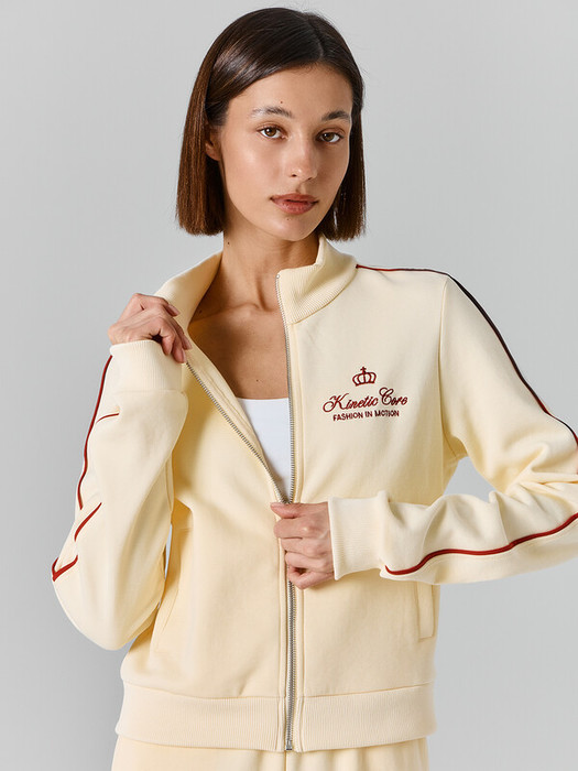 По полечу и сгибу рукава встрочен кант из кулирки. Горловина обработана воротником-стойкой из рибаны. Рукава длинные, втачные, по низу манжеты из рибаны. По центру застежка на метл. молнию. (TwoWay StandartMetal no5, 5,9mm). По переду карманы врамку. Навесной ярлык premium base по заданию.