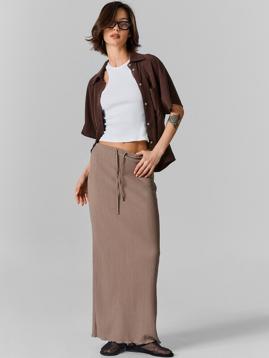 Юбка полуприлегающая, прямая. Пояс обработан вподгибку с тесьмой внутри из основного полотна и внутр резины 15RV. Низ обработан на микрооверлоке.