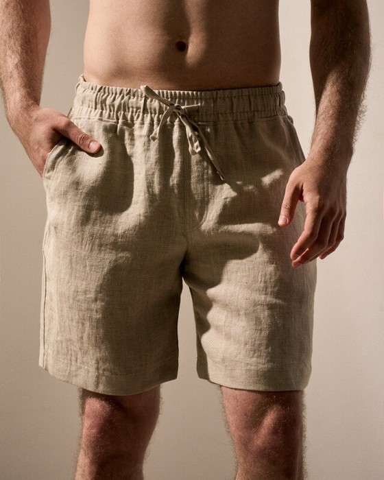 Шорты мужские из льна. Боковые и задние карманы. Пояс внутри с резинкой и шнурком