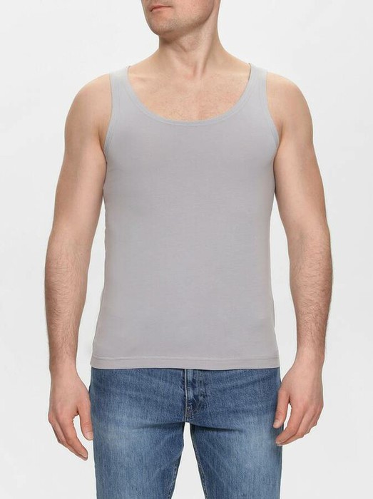 Майка мужская с зауженными шлейками, с овальным глубоким вырезом горловины. Прямой силуэт, стандартной длины - классическая модель.
