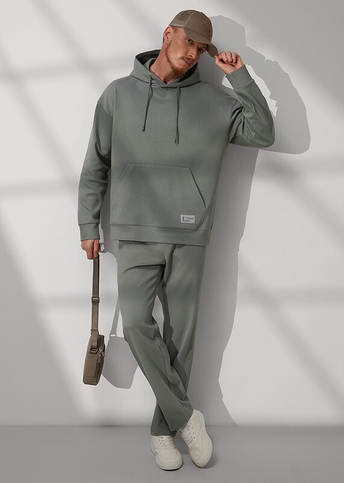 Прямые мужские зауженные брюки из фактурного полотна, с большим содержанием хлопка. На эластичном поясе с регулируемой шнуровкой. Функциональность модели придают боковые карманы. Брюки эргономичные и удобные.