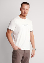 Футболка мужская с круглым вырезом горловины и коротким втачным рукавом из фактурного полотна пике. Изделие дополняет имиджевым принтом. Подойдет к любым брюкам или джинсам.