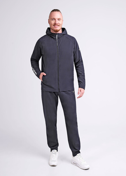 Мужская куртка из футера на молнии. Изделие дополнено 2-мя вместительными карманами на молнии, имиджевой фурнитурой и дизайнерским принтом. Комфортный и практичный вариант для активных мужчин.