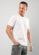 Фуфайка с коротким рукавом среднего объема, круглый вырез, горловина оформлена обтачкой из рибаны. Дополнена оригинальным принтом. Плотность: 150 гр/м2