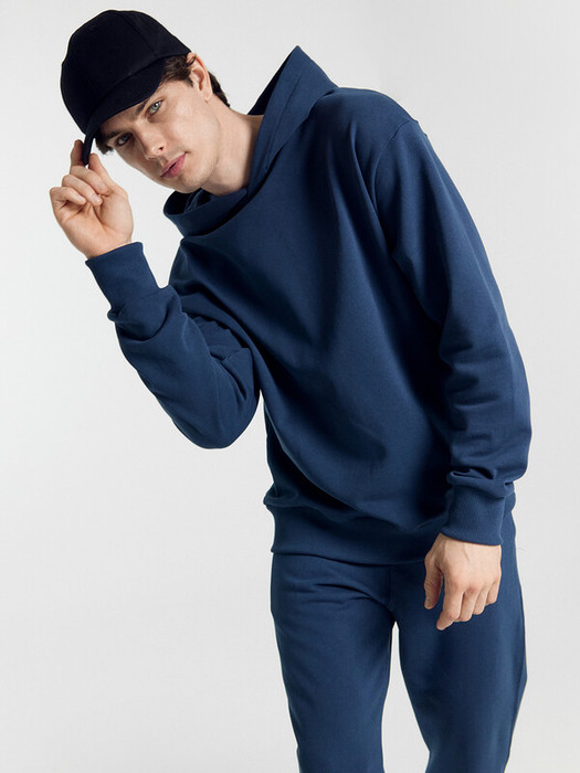 Мужское худи свободного силуэта из трикотажного футера с теплым подчесом. Круглая горловина с капюшоном, длинные рукава на манжетах, слегка спущенная линия плеча, пояс из рибаны – худи удачно сочетает комфортный дизайн и отличное качество!