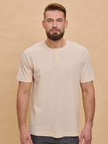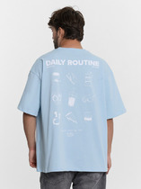 Футболка прямая свободная. Горловина округлой формы обработана обтачкой из рибаны. Линия плеча слегка спущена. Рукава втачные, корткие. Нижние срезы футболки и рукавов обработаны швом вподгибку на 2х шовной плоскошовной машине.