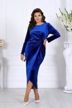 односторонняя складка. Платье длиной выше колена. Низ платья подогнут потайным швом.