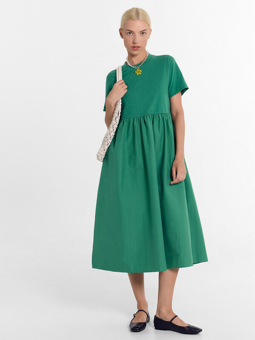 Платье женское свободного силуэта из трикотажного полотна кулирка и ткани.