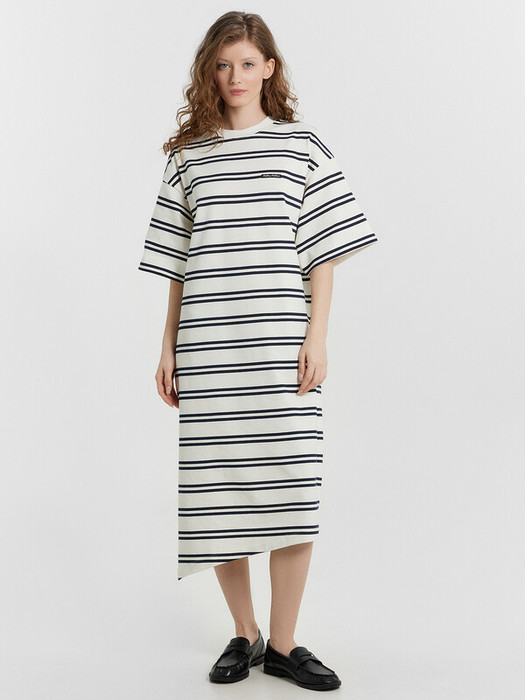 В правом боковом шве обработан разрез. Низ платья асимметричный.