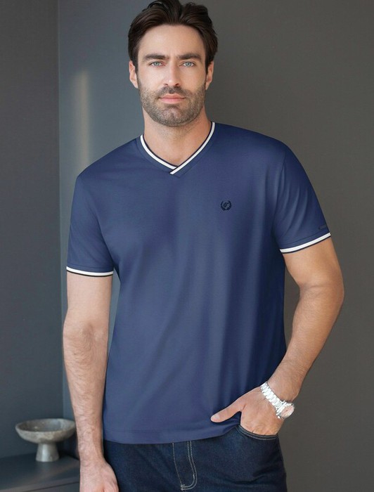 Футболка цвета бургунди с аккуратным V-образным вырезом выполнена из премиального хлопка с эластаном плотностью 200 Г/м2. Высококачественный эластичный хлопок обеспечивает мягкость, воздухопроницаемость и идеальную посадку на любую фигуру и размеры, включая 58 размер. Классический прямой крой футболки подчеркивает фигуру, но не сковывает движений. Элегантный небольшой V-образный вырез с контрастной полосой визуально удлиняет шею, а минималистичная вышивка на груди в виде логотипа бренда добавляет изысканности и индивидуальности, не перегружая образ. Эта базовая футболка - идеальный баланс комфорта и стиля для современного мужчины, легко сочетается с разными низами, создавая образ от кэжуал до более элегантного. Стильная футболка подходит как для повседневной носки, так и для создания более нарядных образов.