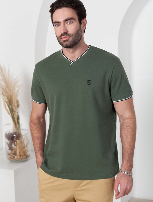 Совместные покупки Нижний Тагил Мужская одежда Футболки — 22.03 Vilatte Футболка с V-вырезом из премиального хлопка с эластаном U49.056 т