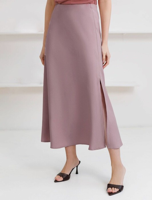 22.03 Vilatte Юбка миди с разрезом скроенная по косой из плотного лиоцелла D26.
