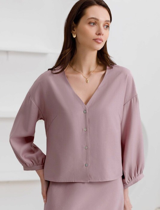 22.03 Vilatte Укороченная блузка с V вырезом из плотного лиоцелла D29.356 зефир