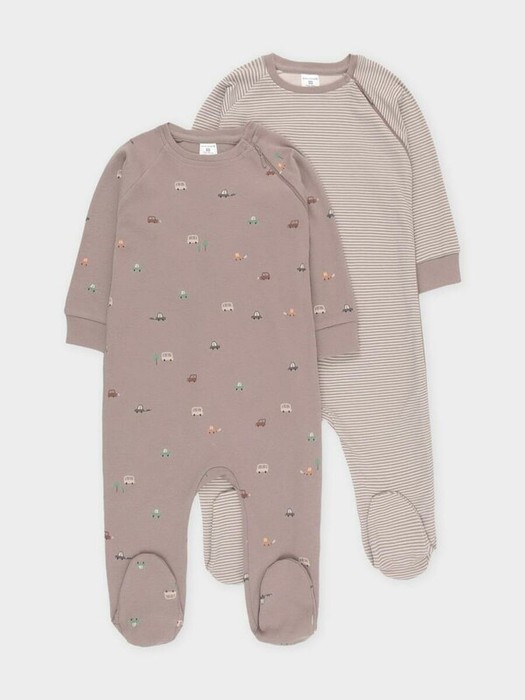 Комбинезоны для новорождённых из мягкого эластичного трикотажа интерлок, произведённого из натурального хлопка. В упаковке 2 штуки. Застёгиваются сбоку на молнию и на кнопку. Длинные рукава-реглан оканчиваются манжетами. Оригинальная набивка выполнена из стойких гипоаллергенных текстильных красителей. Все трикотажные полотна производятся в соответствии с нормами Швейцарского сертификата ЭкоТекс.