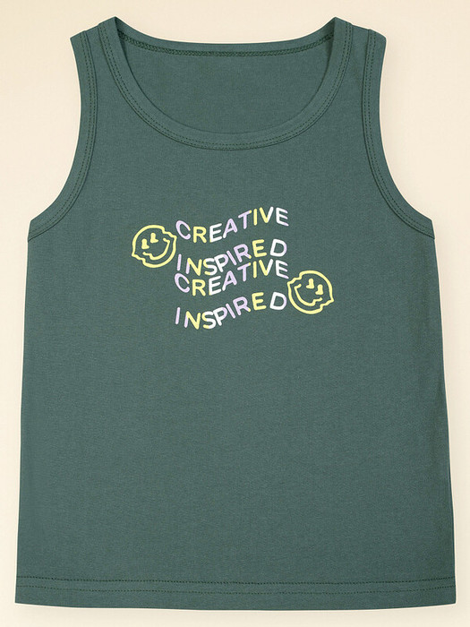 Выбирая бельё для своего ребёнка, любая мама заботится о его качестве и о том, чтобы ребёнку в нём было комфортно. Наша майка из 100% хлопка для мальчика — именно то, что вам нужно! Благодаря натуральному составу ткани модель приятна на ощупь, прекрасно пропускает воздух — кожа ребёнка дышит. Изделие правильного кроя — комфортно садится по фигуре, ребёнку удобно на протяжении всего дня. Такую майку можно носить под джемпер или свитер в качестве нательного белья. Горловина и проймы обработаны в тон — они не растягиваются, сохраняют великолепный внешний вид надолго. Изделие выполнено в трендовом цвете шалфея. Темно-зеленый цвет красивый и практичный. По переду майку украшает забавный принт с позитивным настроением. Перевод: "Вдохновленный творчеством".  Принт эластичный и прочный — прекрасно переносит частые стирки. Эта модель универсальна, подходит для повседневной носки, летнего отдыха и как одежда для дома. Станет замечательным подарком, который способен вызвать искреннюю радость у каждого ребёнка, оставив н