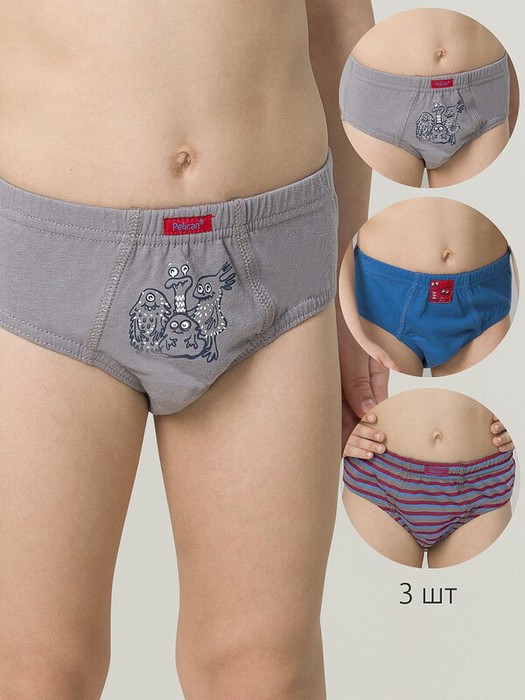 Совместные покупки Нижний Тагил Детская одежда Трусы — 22.04 Pelican Трусы для мальчиков BULB3302(3) Джинс/красный/серый
