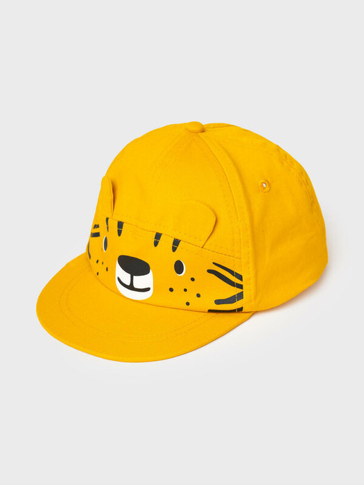 Яркая и весёлая детская бейсболка для малышей, выполненная в виде мордочки тигрёнка. Спереди размещён принт с лицом тигра и объёмными ушками, что делает изделие особенно милым. Козырёк изогнутый. Сзади — эластичная резинка, благодаря которой кепка удобно сидит на голове. Изделие выполнено из натурального хлопка, внутри есть мягкая окантовка.
