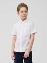 Сорочка для мальчика из смесового хлопка полуприлегающего силуэта. На спинке - кокетка. Воротник отложной со стойкой. Левая сторона полочки дополнена накладным карманом. Застёжка по центру переда на планку с кнопками. Рукава рубашечные со шлицами и манжетами.