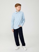 Сорочка для мальчика из смесового хлопка полуприлегающего силуэта. На спинке - кокетка. Воротник отложной со стойкой. Левая сторона полочки дополнена накладным карманом. Карман вверху декорирован принтом. Застёжка по центру переда на молнию. Рукава рубашечные со шлицами и манжетами.