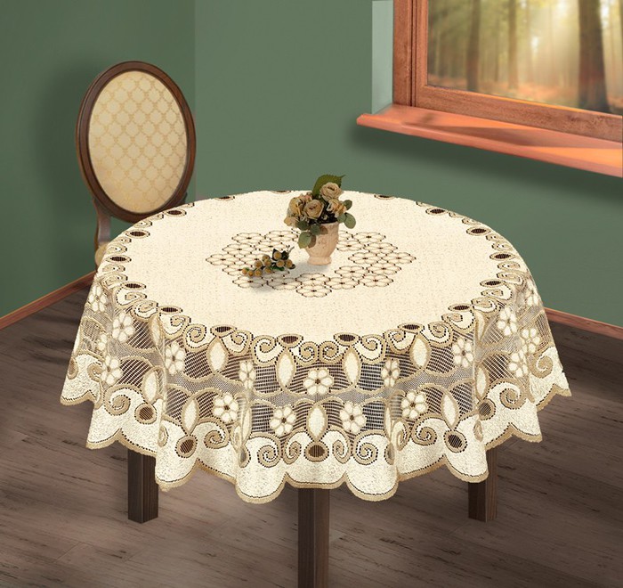 Скатерть из жаккарда (жаккард - рельефная ткань, образующаяся из сложного переплетения нитей, выполненного на ткацком станке). Легко стирается (даже трудновыводимые пятна исчезают уже при замачивании), быстро сохнет, требует лишь легкой утюжки. После стирки не теряет формы и цвета. Состав 100% полиэстер. Вес 0,36 кг. Размер в упаковке: (25*35*2) см. (Диаметр указан от края до края изделия). Производитель - фабрика HAFT (Польша).