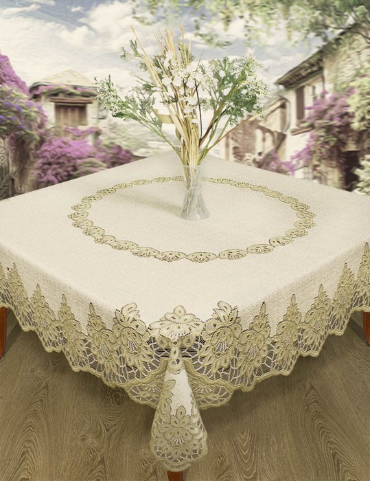 Скатерть из жаккарда (жаккард - рельефная ткань, образующаяся из сложного переплетения нитей, выполненного на ткацком станке). Легко стирается (даже трудновыводимые пятна исчезают уже при замачивании), быстро сохнет, требует лишь легкой утюжки. После стирки не теряет формы и цвета. Состав 100% полиэстер. Размер указан от края до края изделия. Вес 1 кг. Размер в упаковке: (25*35*8) см.
