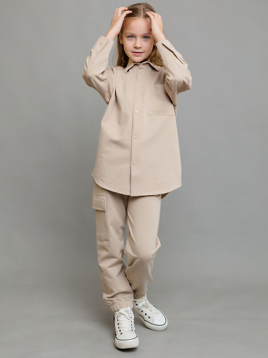 Брюки детские трикотажные из футера бежевые.  Модный брюки-карго с карманами по бокам и резинкой в нижней части брючин. Однотонная расцветка, пояс на резинке.Характеристики:Ткань: футер 2х нитка 90% хлопок 10% полиэстерПроизводитель: batik