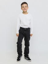 Базовые прямые джинсы со средней посадкой. Деним из натурального хлопка с добавлением эластана для максимального комфорта. Классическая модель подойдет как девочкам, так и мальчикам. Брюки будут гармонично смотреться с объемным верхом кроя оверсайз. Два прорезных кармана спереди, кармашек для мелочи, два накладных кармана сзади.