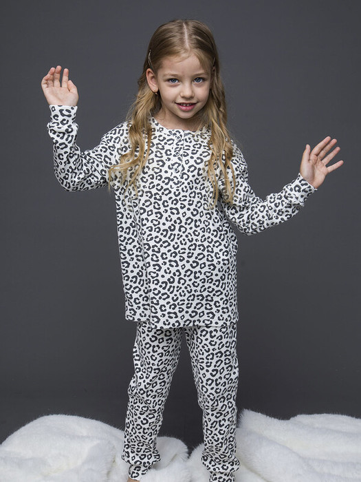 Комплект пижамный для девочки из кашкорсе: футболка с длинным рукавом и брюки. Мягкий и нежный комплект в бежевом цвете с леопардовым принтом. Подойдет для повседневной носки в любое время года, как дома, так и в путешествиях.Характеристики:Ткань: Кашкорсе 95% хлопок 5% эластанПроизводитель: batik