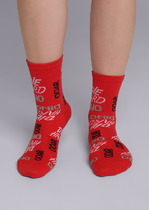 носки детские для мальчика с выделенным мыском и пяткой с рисунком лица деда мороза