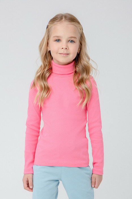 Однотонная детская водолазка из эластичного трикотажа кашкорсе. Длинные рукава. Высокая горловина с отворотом.