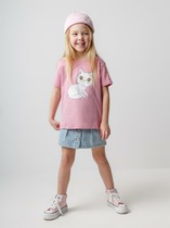 Очаровательная футболка для девочек. Изготовлена из трикотажного полотна кулирного переплетения. Силуэт прямой, низ фигурной формы. Длина до середины бедра. Рукава короткие. Горловина круглой формы. Отличный выбор!