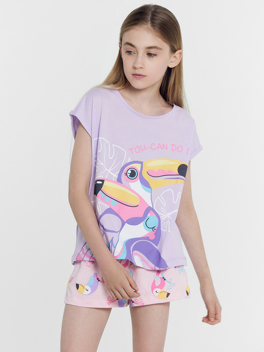 Комплект состоит из футболки и шорт. Футболка прямого силуэта. Перед и спинк цельнокроенные.