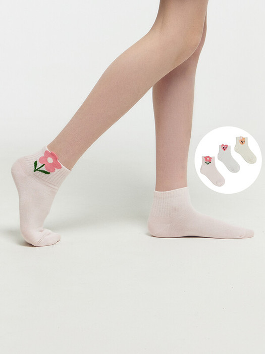 рис.2771  Мультипак из трех пар гладких детских носков с резинкой средней высоты и объёмными рисунками в виде цветка, сердца и зайца.
