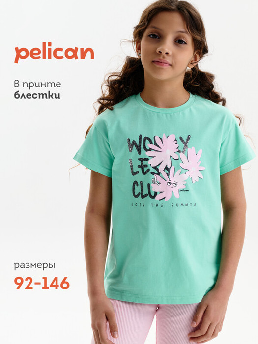 Совместные покупки Нижний Тагил Детская одежда Футболки, майки — 24.03 Pelican Футболка для девочек GFT3389/2 Ментол